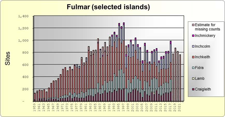 all islands, these charts only show the counts for Craigleith, Fidra, Lamb, Inchcolm, Inchmickery and Inchkeith.