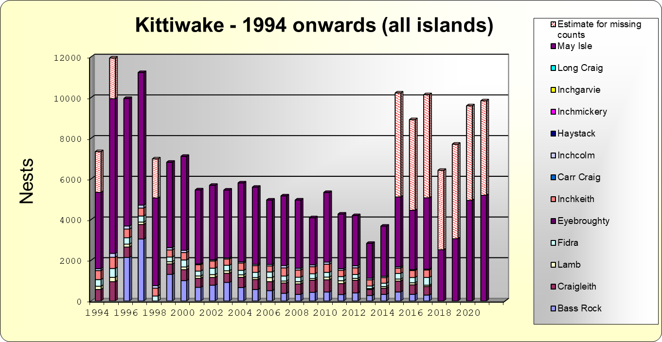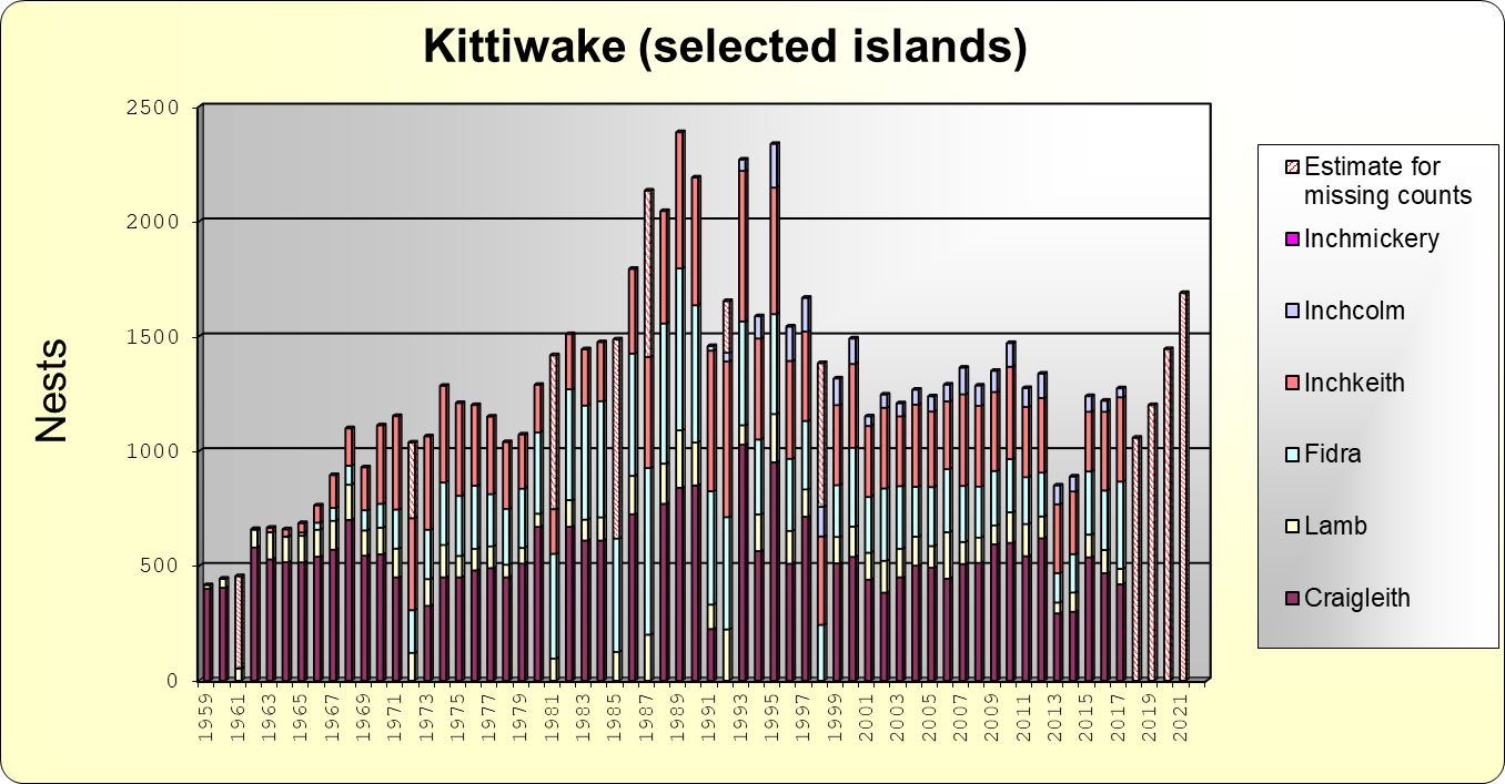 all islands, these charts only show the counts for Craigleith, Fidra, Lamb, Inchcolm, Inchmickery and Inchkeith.
