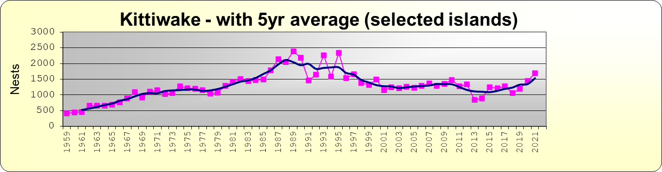 When counting Kittiwake, we count the number of apparently occupied nests. This can be nests where the birds are apparently incubating or brooding; or other well-built nests including empty ones capable of holding eggs.