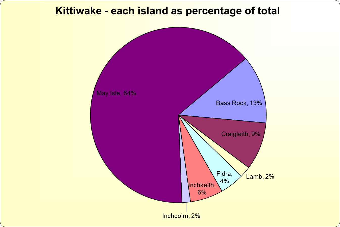 4: Pie chart showing the split of breeding Kittiwake over the different islands.