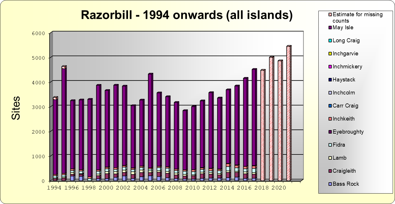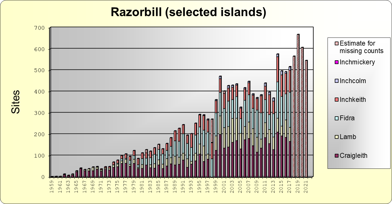 all islands, these charts only show the counts for Craigleith, Fidra, Lamb, Inchcolm, Inchmickery and Inchkeith.