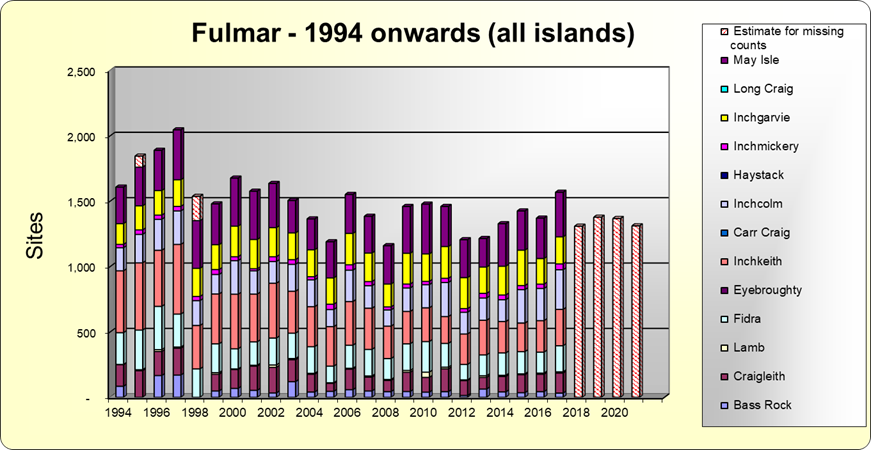 all islands, these charts only show the counts for Craigleith, Fidra, Lamb, Inchcolm, Inchmickery and Inchkeith.