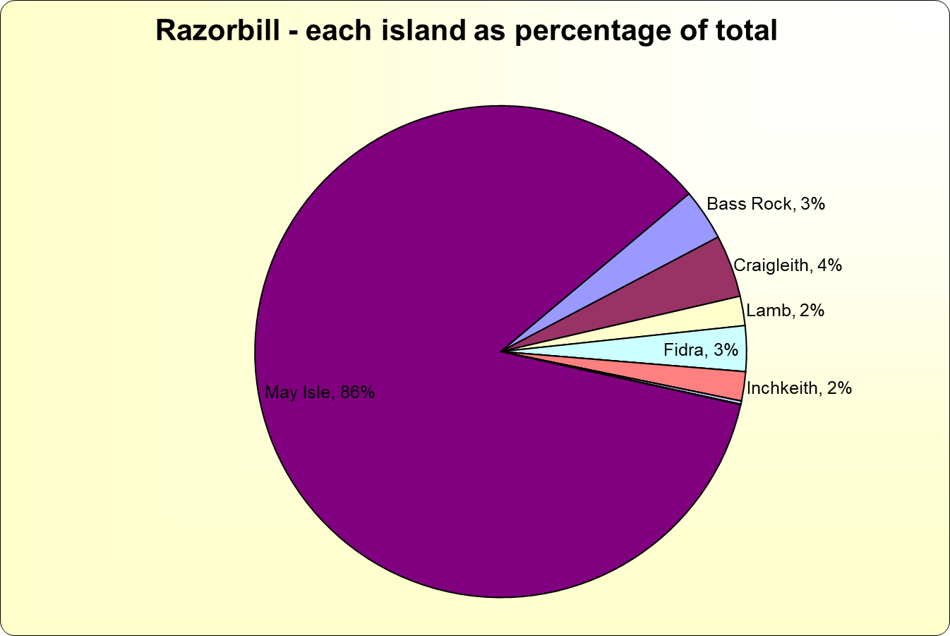 4: Pie chart showing the split of breeding Razorbill over the different islands.